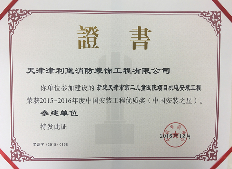 公司承接了包括寫(xiě)字樓、綜合樓、酒店、商場(chǎng)、金融保險(xiǎn)、醫(yī)療教育、飛機(jī)制造、軌道交通、工業(yè)企業(yè)等一大批具有社會(huì)影響力的工程項(xiàng)目,如:天津津匯廣場(chǎng)、天津泰達(dá)現(xiàn)代服務(wù)產(chǎn)業(yè)區(qū)G2地塊(泰達(dá)MSD-C區(qū))、濱海文化商務(wù)中心、天津高銀117大廈、天津濱海喜來(lái)登酒店、天津天河城購(gòu)物中心、天津市第二兒童醫(yī)院、空客A320、A330項(xiàng)目、新一代運(yùn)載火箭產(chǎn)業(yè)化基地項(xiàng)目、津?yàn)I快速輕軌工程、天津地鐵一、二、六號(hào)線(xiàn)工程、天津?yàn)I海國(guó)際機(jī)場(chǎng)二期擴(kuò)建工程項(xiàng)目機(jī)場(chǎng)工程T2航站樓、北京新機(jī)場(chǎng)停車(chē)樓及綜合服務(wù)樓、天津平安泰達(dá)金融中心以及天津一汽豐田汽車(chē)有限公司新能源工廠(chǎng)建設(shè)消防工程等項(xiàng)目,積累了豐富的施工及管理經(jīng)驗(yàn),多次贏(yíng)得業(yè)主的認(rèn)可和表彰,并有7項(xiàng)參建工程獲得天津市建設(shè)工程“海河杯”獎(jiǎng)、有6項(xiàng)參建工程獲得天津市建設(shè)工程“金獎(jiǎng)海河杯”獎(jiǎng)、有3項(xiàng)參建工程獲得“國(guó)家優(yōu)質(zhì)工程獎(jiǎng)”、有15項(xiàng)參建工程獲得中國(guó)建設(shè)工程“魯班獎(jiǎng)”、有2項(xiàng)參建工程獲得“中國(guó)安裝之星”優(yōu)質(zhì)獎(jiǎng)、有1項(xiàng)參建工程獲得北京市建筑長(zhǎng)城杯工程金質(zhì)獎(jiǎng)。同時(shí)被中國(guó)消防協(xié)會(huì)評(píng)定為AAA信用等級(jí)企業(yè)。公司以卓越的工程品質(zhì)和全方位的服務(wù)得到了社會(huì)各界的好評(píng),在同行業(yè)中享有較高的信譽(yù)。