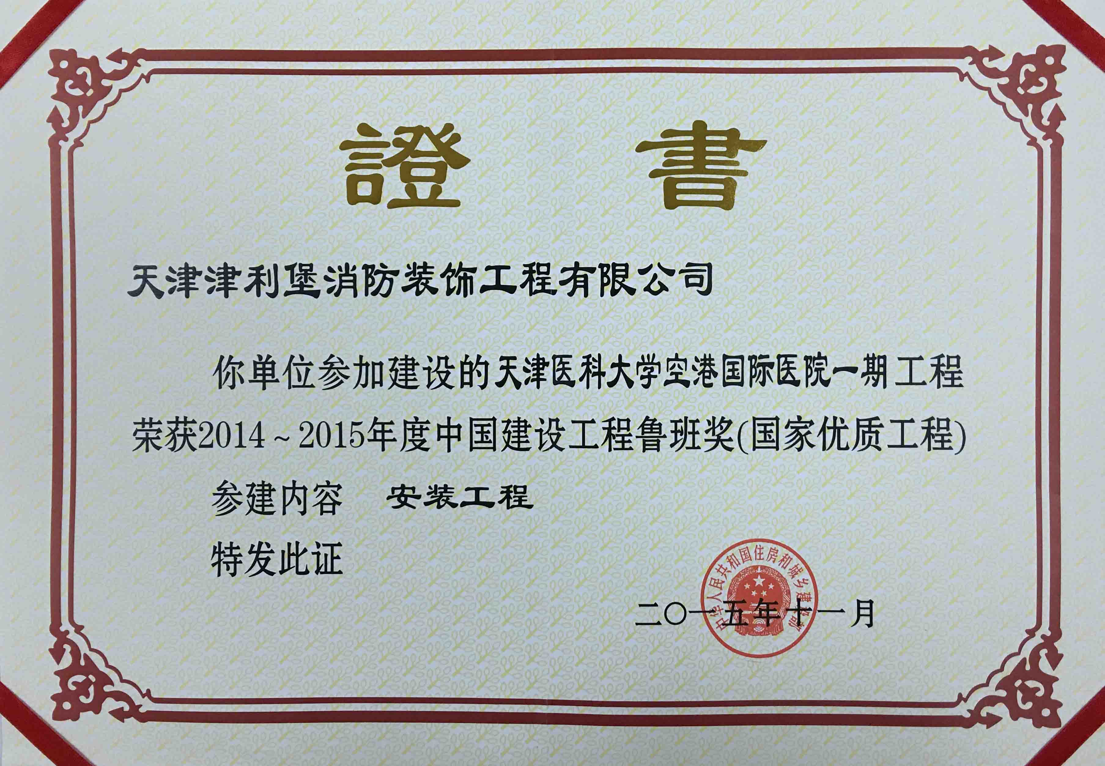 天津醫(yī)科大學(xué)空港國際醫(yī)院一期工程榮獲“中國建設(shè)工程魯班獎(jiǎng)(國家優(yōu)質(zhì)工程)”榮譽(yù)稱號(hào)